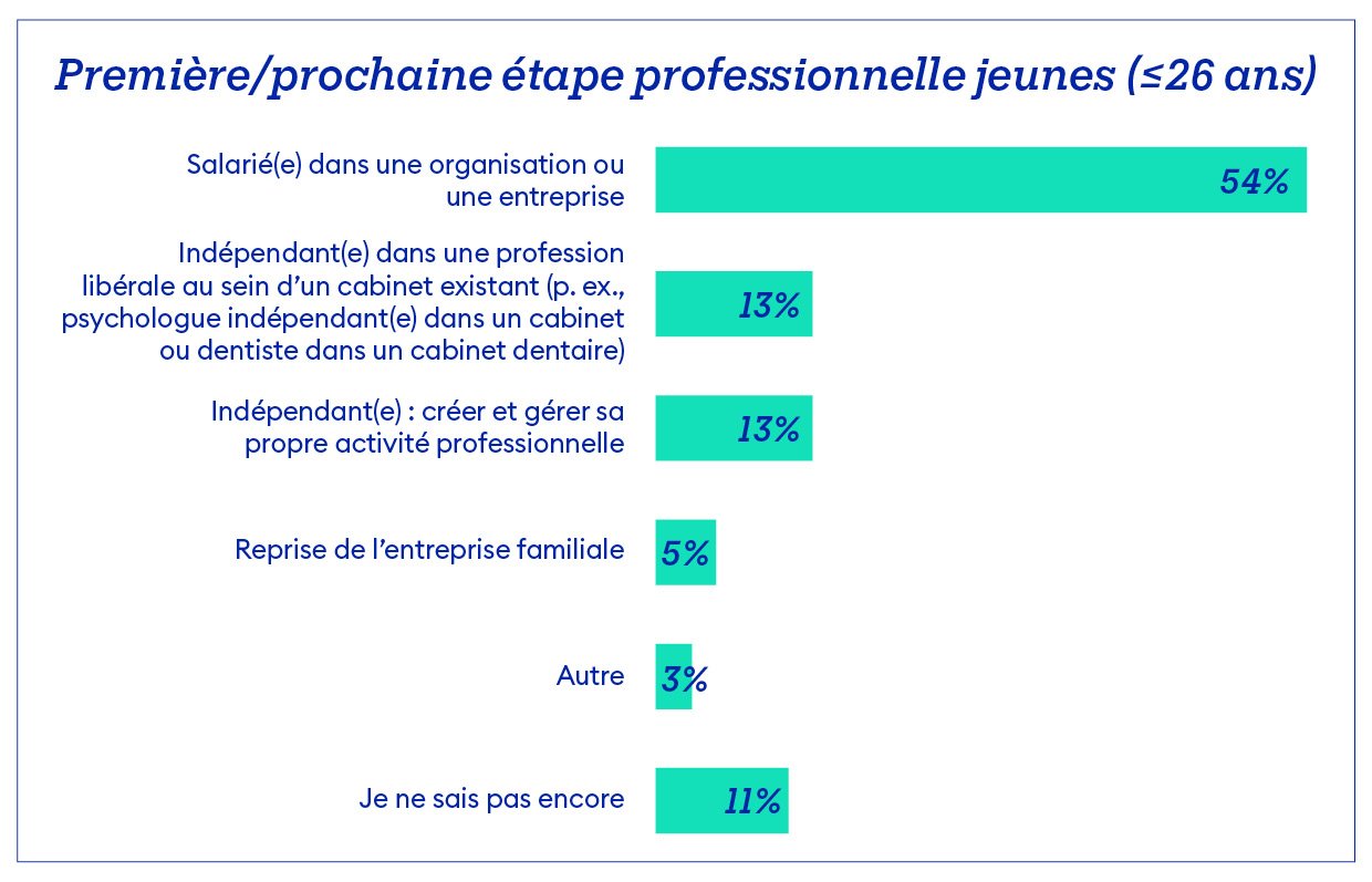 Illustration 1 : Première/prochaine étape professionnelle jeunes (<26 ans) — Enquête Acerta-Indiville, été 2025