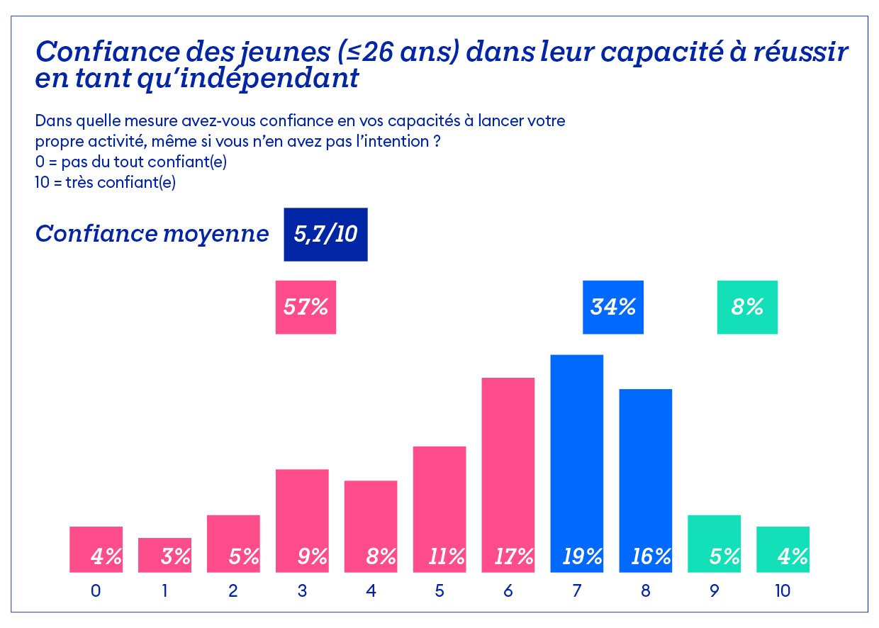 Illustration 2 : Confiance des jeunes (<26 ans) dans leur capacité à réussir en tant qu’indépendant — Enquête Acerta-Indiville, été 2025