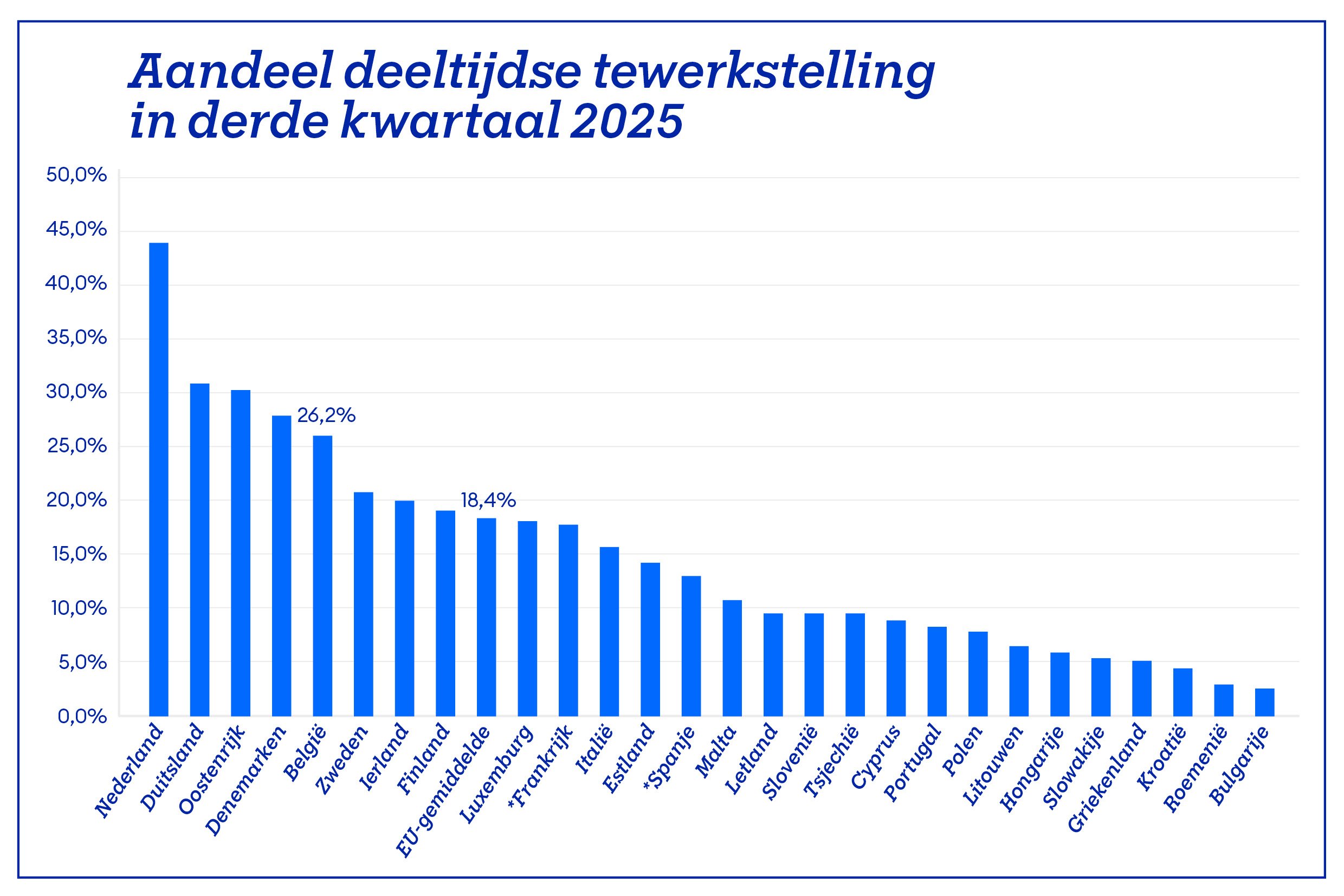Figuur 1: Aandeel deeltijdse tewerkstelling in derde kwartaal 2025 - cijfers Eurostat
